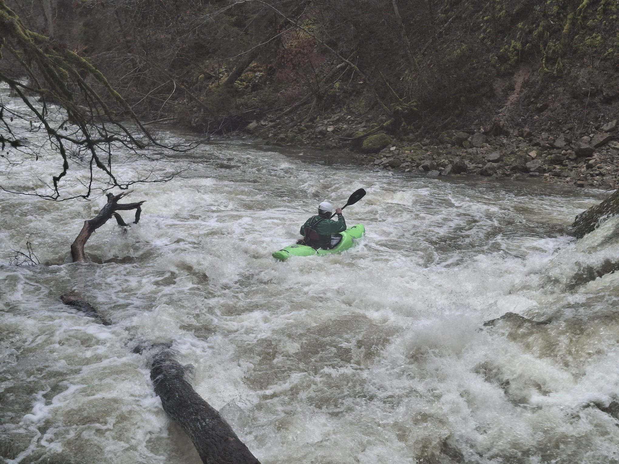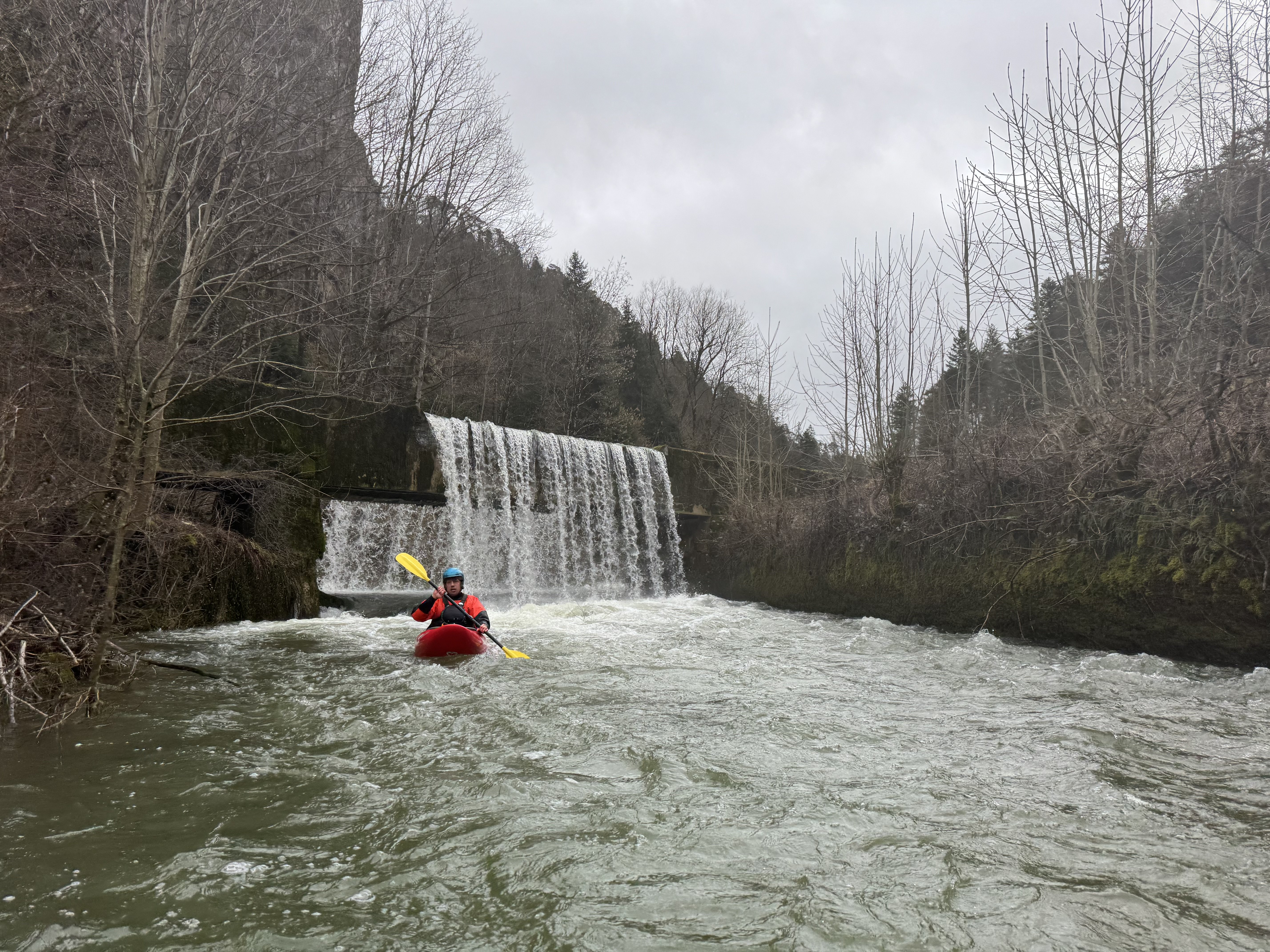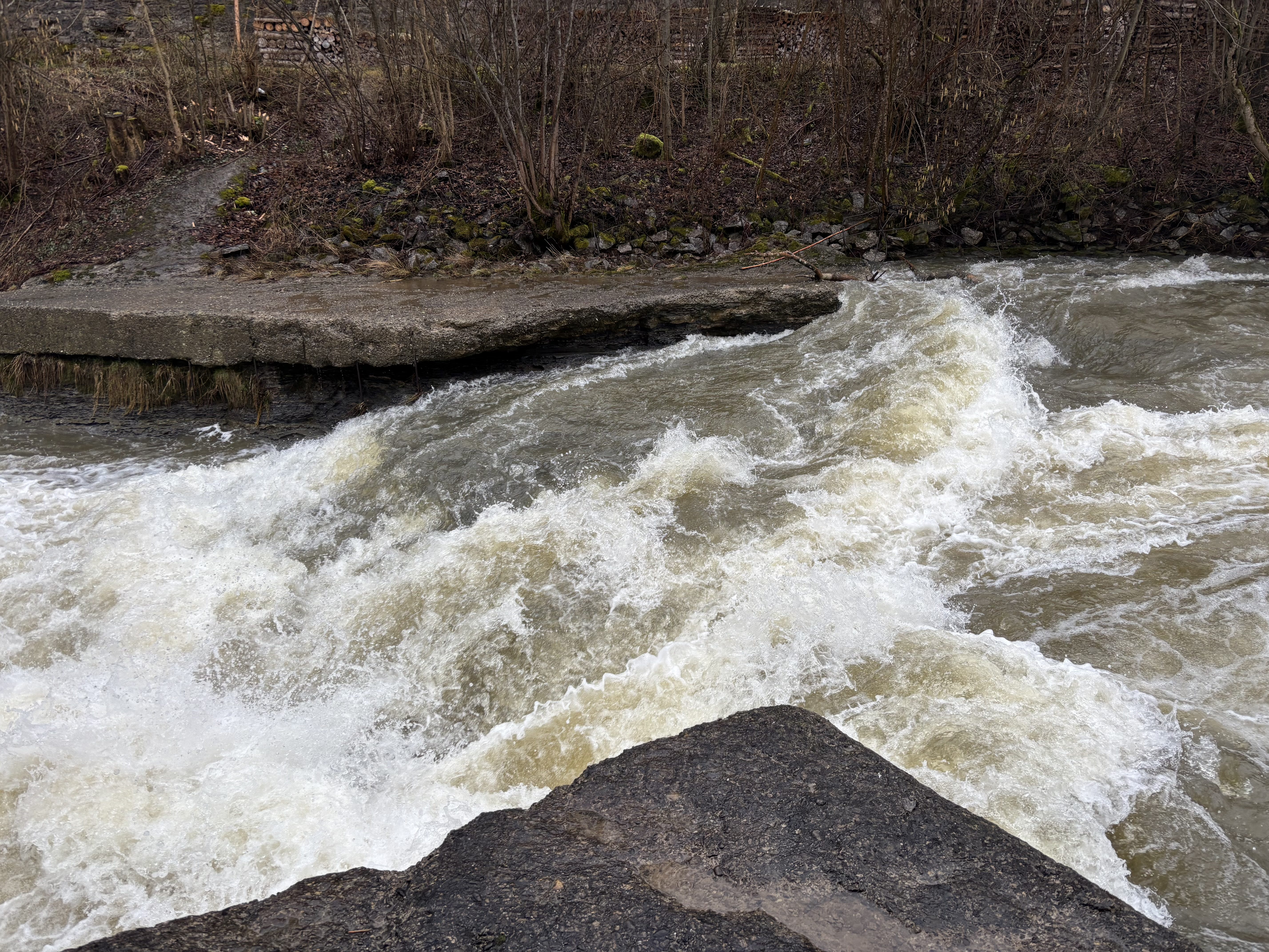 Befahren am 21.2.26 bei 16kubik. Die Kombi aus eingemauertem Bachbett und Bäumen war noch stressig für WW2+. Die Schlucht am Ende unbedingt vorher anschauen