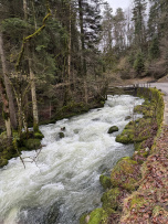 Dieser Streckenabschnitt lohnt sich für Wildwasserpaddler nicht. Es befindet sich eine Kalkstufe mit ca. 1,5 Metern höhe darin bevor der Bach in den Stausee mündet. Es liegen sehr viele Bäume im Bach. Nach dem Stauwehr (46.749422,5.841822) befindet sich ein langer Slide, ca. 200 Meter lang. Man kann direkt zum Einstieg und zum Ausstieg des Slides fahren. Der Slide ist ab 20 Kubikmetern lohnenswert.